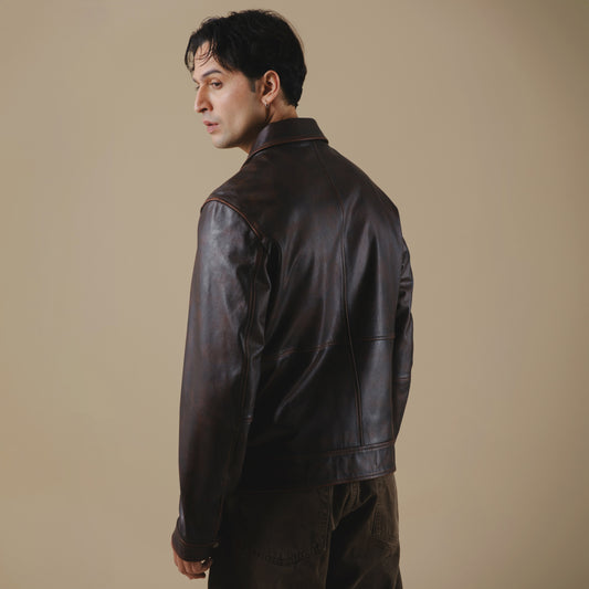 LOOSE FIT VINTAGE BIKER (BROWN/COGNAC)